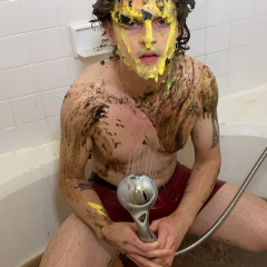 GARYWAM had a sloppy pie dumped all over his head by bsmessybakery